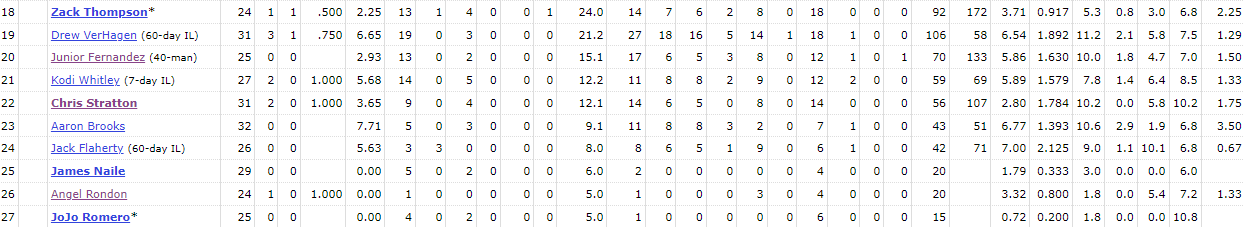 한편 9월 확장 로스터로 꽤나 묵직한 공을 뿌리는 불펜 Naile과 28살의 노망주이자 AAA서 9홈런 30도루 .782OPS로 쏠쏠했던 외야수 DeLuzio가 콜업됐다. Naile은 Woodford, Thompson과 같이 가비지 이닝을 길게 막아줄 것이며 DeLuzio의 주 쓰임새는 대주자이자 팀에 거의 없는 백업 중견수로 활약할 것이다.