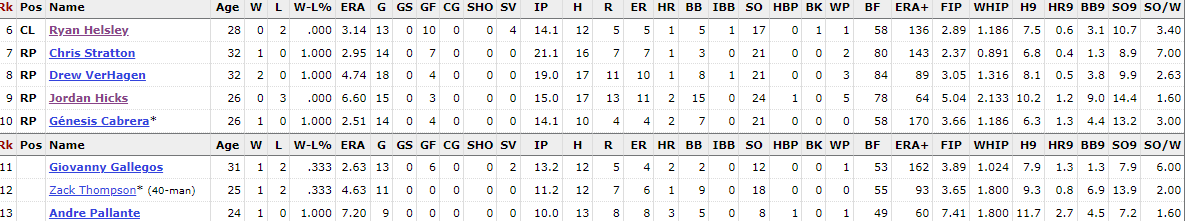 | 7 | Paul DeJong | SS | 13G 3HR 6RBI .364/.417/.636 189wRC+ |