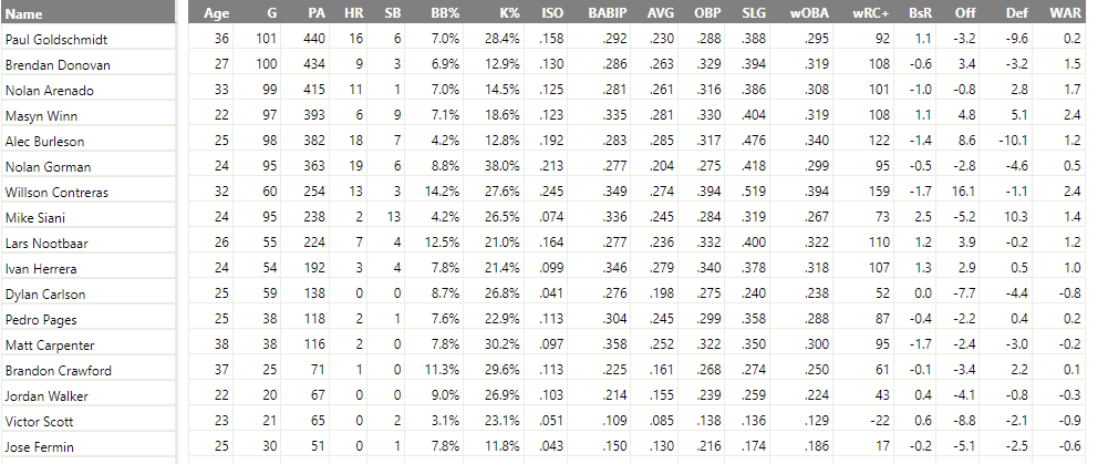 주목할만한 Cardinals 선수의 스탯캐스트 분석