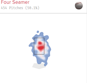 다만 포심 패스트볼의 라이징 무브먼트가 1인치 이상 무뎌진데다가 정가운데로 몰리는 공도 늘어나면서 피xwOBA가 .349까지 상승한 것은 우려스러운 부분으로 구속이 유지되고 있는 만큼 향후 급격하게 무너질 가능성은 낮다고 생각되지만 어느 정도 커맨드를 향상시키는 노력은 필요할 것으로 보인다.