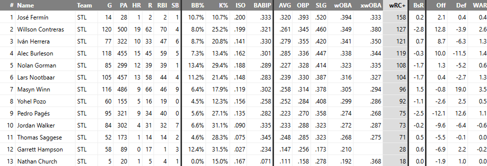 STL 64승 57패 승률 .489 (NL Cnt 4위) Diff -32