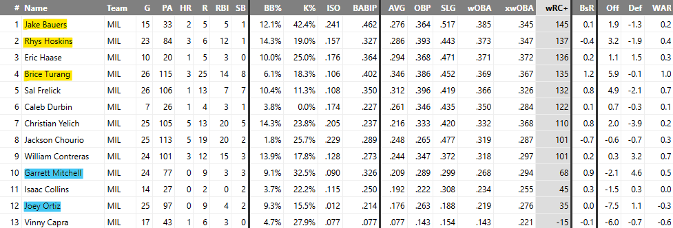 부상으로 계속 결장 중이던 Kyle Stowers가 돌아와서 직전 경기에 4번 타자로 데뷔했다. 결과는 4타석 3타수 2안타. 2루타와 HBP가 하나씩 있었다. Edwards와 Lopez의 고타율은 바빕빨이지만, Stowers가 돌아와서 타선의 무게감이 좋아졌다.