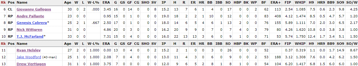 Bullpen Stats
